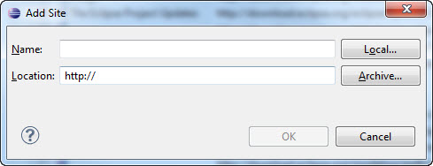 8. Click the [Archive] button to the right of the Location field. In the file explorer window now displayed, navigate to and select the archive file for the Agentry Editor plug-in from the first step in this procedure. Click [OK] after returning to the Add Repository screen.