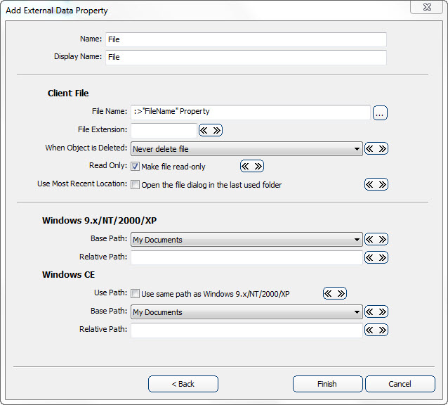 • File: External data property that references the full path and file name for the file stored on the client device.